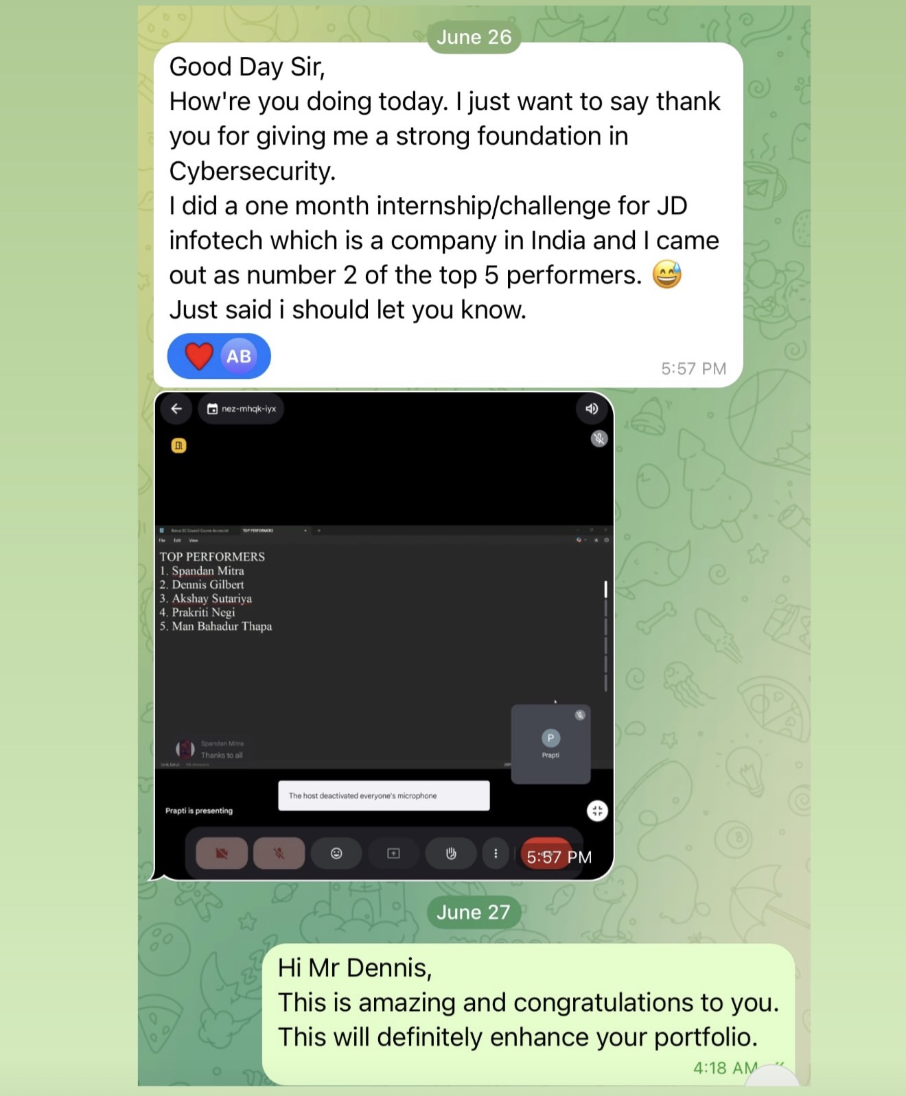 Yes, internship placements are guaranteed after passing your final assessment. This internship is from a recognized cyberlab in India.
